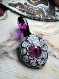A lovely set of warm and cool purples in this pendant. The black has a slightly sparkle ✨ Pendant measures approx. 1 1/8'' (2.9 cm) round and 2' (5 cm) long.